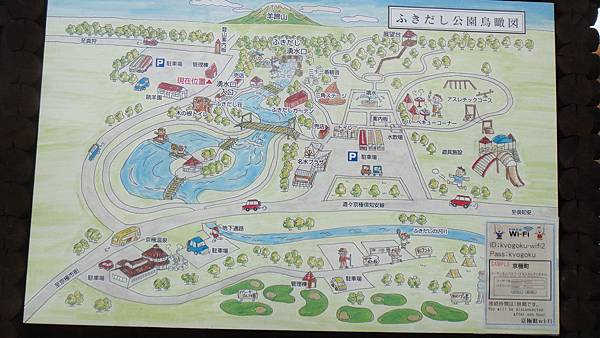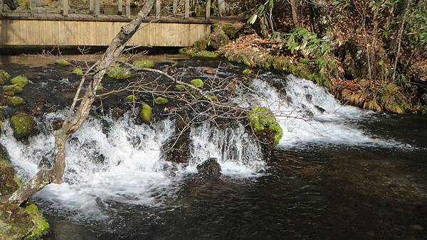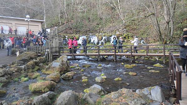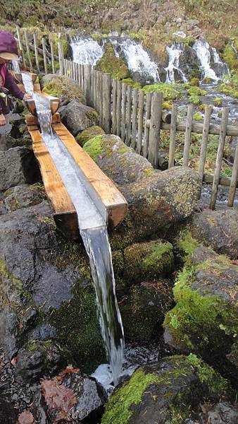 洞爺湖附近羊蹄山下有個「ふきだし公園」也是個美麗景點,我不知道中文要如何翻譯,總之,它是個馳名的湧泉公園,羊蹄山上的雪水經由滲透由石縫湧出,水質晶瑩剔透又純淨,可以直接生飲,不少日本遊客都帶了瓶瓶罐罐裝回家飲用。